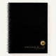 Modern Minimalist Black Gold Brushed Metal Monogram Medallion Initial Name Title Custom Text Notebook