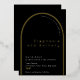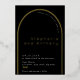 MInimal black, gold, and white wedding foil invitation with and arched design and a small branch.