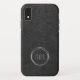 An iPhone XR case with a minimal design of faux leather and silver rings to insert your initials.