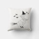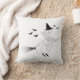 Minimal Black Line Art Of Witch And Bats Halloween Cushion