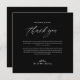 Express your appreciation with this high end Minimal Black Modern Wedding Thank You, perfect for couples who seek to add a luxurious touch to their formal wedding stationery. This minimalist gem features a simple yet striking calligraphy script typography that adds a touch of sophistication to your heartfelt message. Crafted with utmost care, our stylish and trendy thank you card exudes a minimal and timeless charm, making each moment memorable for everyone involved. Customise the background colour, text font, size and placement to your liking using the design tool. For matching items, visit the Black Elegant Minimal Modern Dark Wedding invitations collection.