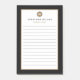A professional lined notepad with a minimalist monogrammed design in a black and gold colour palette. Custom name and title, role or custom text presented on a simple white background, framed by a black border. Personalise using the fields provided or use the 'message' button to contact the designer for help.