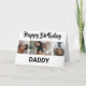 Everyone will love these contemporary 3 photo collage birthday cards, with a bold script font which says 'HAPPY BIRTHDAY' and at the bottom it says 'DADDY' this can be changed to any relative, friend or name! The text font style, size and colour can be changed by clicking on the customise further link after personalising.