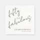 “Fifty and fabulous.” Own it and usher in 50 with style! Using this sophisticated minimal 50th birthday personalised paper napkin will help make her birthday a party to remember. Dramatic black handwriting script calligraphy and simple sans serif typography overlay a clean, white background. Personalise with her name and date of event. Your choice of 3 sizes: cocktail, luncheon, & dinner. Order a different size for each course of your celebratory meal! Matching and coordinating invitations, envelopes, labels, paper plates and other party supplies are also available.