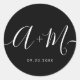 Minimal black white Monogram Script Wedding Classic Round Sticker