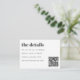 Bold Minimalist Black White Retro Simple Custom Wedding Enclosure Card with QR Code. Please note, the qr code is a pure black colour but the text for this collection is a lighter black.