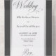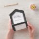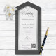 AVAILABLE WITH OR WITHOUT A QR CODE OR DINNER SELECTION OPTIONS. This design features a charcoal black background with a white text area framed in faux silver foil. A monogram with the bride and groom's first initial on the outside flap completes it. Created by Simply Farmhouse Press.