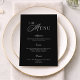 This elegant black & white wedding menu features refined calligraphy paired with clean modern serif typography, creating a timeless and sophisticated look for your wedding reception.