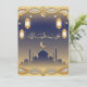 Minimal Blue & Gold Mosque Skyline Eid Mubarak Holiday Card