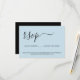 Create an effortlessly stylish and modern atmosphere for your wedding with our minimalist script RSVP cards. These black and blue cards exude chic simplicity and elegance, making them a perfect addition to any wedding ensemble.