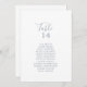 These minimal blue table number seating chart cards are perfect for an elegant wedding. The design features a simple greenery silhouette in light slate blue with classic minimalist style. The card prints on the front and back (double-sided).