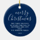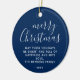 Minimal Blue White Wishes Merry Christmas Script Ceramic Ornament. White script on dark blue background. Add your text and make a trendy and chic Christmas ornament.