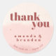 Minimal Blush Bloom Bold Script Wedding Thank You Classic Round Sticker