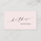 Modern blush pink business cards featuring a simple and minimal design with "hi there" in an elegant calligraphy along with your name on the front. The back has your contact info along with social media icons and an optional QR Code in a minimalist layout. The QR Code may be removed and the social media icons may be changed or removed in the design editing tool.