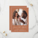 This simple, minimalist Save the Date card features a boho photo arch above the words "Save the Date" in elegant white handwriting script, followed by the couple's names, wedding date and city in sans serif font on a terracotta background. Add a more detailed message with additional information on the reverse.
