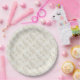 A delicate seamless floral pattern paper plate featuring elegant line art illustrations of wildflowers, leafy stems, and tiny berry branches on a clean white background. This minimalist botanical design uses soft neutral tones and fine outlines to create a calm, modern aesthetic.