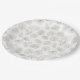 A delicate seamless floral pattern paper plate featuring elegant line art illustrations of wildflowers, leafy stems, and tiny berry branches on a clean white background. This minimalist botanical design uses soft neutral tones and fine outlines to create a calm, modern aesthetic.