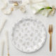 A delicate seamless floral pattern paper plate featuring elegant line art illustrations of wildflowers, leafy stems, and tiny berry branches on a clean white background. This minimalist botanical design uses soft neutral tones and fine outlines to create a calm, modern aesthetic.