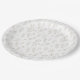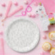 A delicate seamless floral pattern paper plate featuring elegant line art illustrations of wildflowers, leafy stems, and tiny berry branches on a clean white background. This minimalist botanical design uses soft neutral tones and fine outlines to create a calm, modern aesthetic.