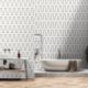 The delicate bow pattern introduces a quiet decorative element that balances structure and softness, perfect for powder rooms, bedrooms, dressing rooms, nurseries, home offices, and accent walls. Its neutral palette allows seamless pairing with natural woods, stone, brass, and layered textiles, supporting a wide range of contemporary and transitional interiors.