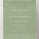 Minimal design branches sage green wedding invitations. Simple and clean. Background colour can be changed to fit your wedding theme. Elegant serif and calligraphy styled fonts.