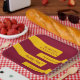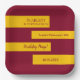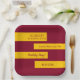 This elegant burgundy and gold Paper Plate is perfect for a modern Birthday. the simple design features elegant burgundy calligraphy on gold stripes on a burgundy background.