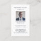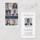Professional and modern white and navy photo grid collage vertical business card perfect for displaying the photos of your business team members on the front side of the card. The design features a minimal modern 6 photo grid layout with a colour block nameplate to display your business name. There is a section along the bottom to display the website address. The reverse side is designed in minimal and modern style with business name, team member's name/title, individual photo and contact information.
