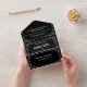 This elegant black and white wedding invitation is perfect for a modern wedding. The simple design features a beautiful floral frame with elegant white typography on a bold black background.