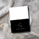 Flip the card to reveal a stunning black and white backdrop. The upper half remains crisp white, while the lower half transitions to a sleek black. A smaller scale version of the leaf monogram graces the black space, accompanied by the bride and groom's names in a complementary font.