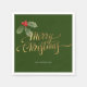 Minimal Merry Christmas Holly Branch Holiday napkin design features a simple Christmas Holly branch with faux gold foil typography script "Merry Christmas" finished with your custom family name set on a festive green background. These xmas napkins are the perfect addition to your Christmas table decor.