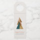 This fun bottle hanger tag has wood accents as well as pine green, coral and blush.