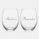 Minimal Classic Script Couple Names Engagement Stemless Wine Glass