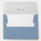 Elegant dusty blue wedding envelope with your names in a classic serif font along with your return address in a modern sans serif font. The inside has your monogram. This simple and minimal design is great for a traditional or formal wedding invitation suite.