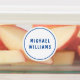 This design features a minimal design with your personalised name or text in blue, red and green. Perfect for school, home and work for trips, lunches, books and so much more.
