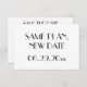 Minimal Art Deco style white wedding Save The Date flat cards with changeable text Same Plan New Date