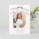 Minimal Deep Blush Bow Graduation Photo Thank You Card