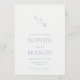 Bring effortless elegance to your wedding stationery with this minimal dusty blue invitation featuring a delicate watercolor floral wreath and refined monogram. The clean fine-art layout, soft botanical details, and airy white space create a timeless and luxurious aesthetic.