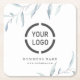 Minimal dusty blue greenery branded business logo square paper coaster