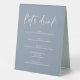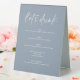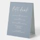 Minimal Dusty Blue Modern Wedding Drink Bar Menu Table Tent Sign. The text 'let's drink' is not editable. Can be used for weddings, bridal showers, baby showers, etc.
