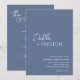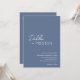 Modern dusty blue all in one wedding invitation featuring a simple and minimal design with the bride's name in an elegant script and the groom's name in a contemporary sans serif font. Below in the lower right corner are your event details in a minimalist layout. The back has your additional details and QR Code, so you can skip the enclosure card and RSVP card.