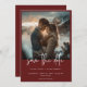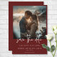 This wedding save the date card design features a dusty burgundy wine background and is the perfect canvas for your favourite couple photo. The simple details appear in white text. The back features the couple's first names. Unique and elegant, this design can be used for any season. Created by Simply Farmhouse Press.