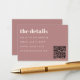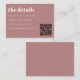 Minimal Dusty Rose Retro Custom Wedding QR Code Enclosure Card