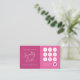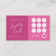 This minimal and elegant customer loyalty business card is perfect for many professional women. It features a white handwritten signature script font, a dark berry pink colour block, and a berry pink colour block. It's modern, chic, simple, and stylish; the perfect design to advertise your business.