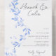 Elements: an elegant vine of in the style of vintage porcelain painting. Names appear in a modern script; other details in classic serif fonts Colours: blue, porcelain blue, delft blue, french blue, grey. Themes: elegant, modern, minimalist, garden, subtle, light, airy, timeless, vintage. Collection: Minimal Elegant Porcelain Floral Chinoiserie Wedding Collection Product Type: All-In-One Wedding Invitations