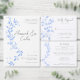 Elements: an elegant vine of in the style of vintage porcelain painting. Names appear in a modern script; other details in classic serif fonts Colours: blue, porcelain blue, delft blue, french blue, grey. Themes: elegant, modern, minimalist, garden, subtle, light, airy, timeless, vintage. Collection: Minimal Elegant Porcelain Floral Chinoiserie Wedding Collection Product Type: Table Card