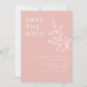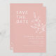 Minimal Elegant Blush Pink Save The Date Photo. Stylish minimalist save the date Photo card with simple elegant font and foliage in blush pink and white, easily editable template,