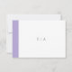 Modern wedding RSVP card with a bold digital lavender purple band along the left side. The template features text in a combination of a classic serif font, a modern serif font and an elegant script. The back has a band along the left side along with your monogram. This simple and minimal design is great for a traditional, formal wedding.