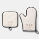 Minimal & Elegant Gold Monogram Wedding Oven Mitt & Pot Holder Set
