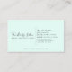 This minimal and elegant customer appointment business card is perfect for many professional women. It features a black handwritten signature script font, a pastel mint green background, and a thick white border. It's modern, chic, simple, and stylish; the perfect design to advertise your business.