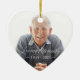 Remember and cherish your loved one with this custom "loving memory" photo memorial photo ornament. The design features photo design to display your own special photo. "In Loving Memory" is displayed in calligraphy and personalised with the date born and the date of passing. The reverse side has additional personalisation text and a heart.